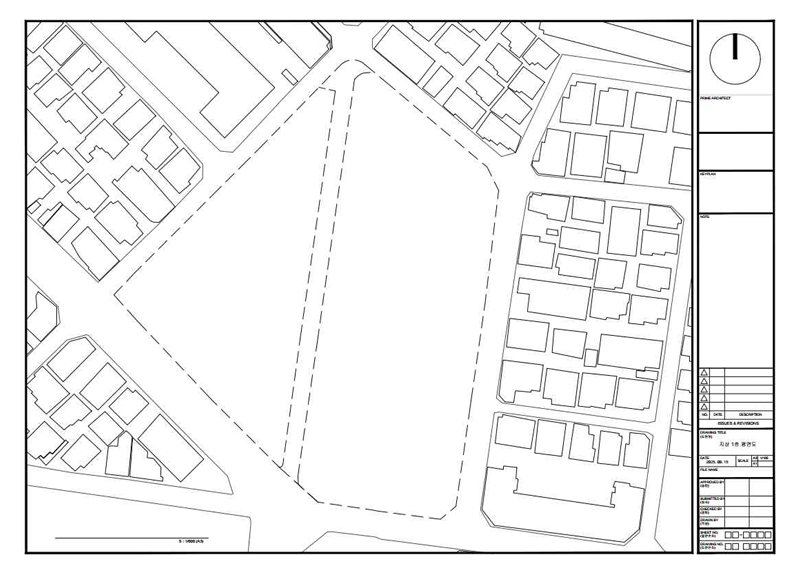 위의 사진에서 보듯이 내 대지의 형상은 사다리꼴이라 하기에도 애매한 모양의 오각형이다. 사선으로 높아지는 경사지이고 제일 낮은 지대가 서쪽의 직각부분이고 북동쪽으로 사선으로 높아지는 고저차 12M 대지 이다.